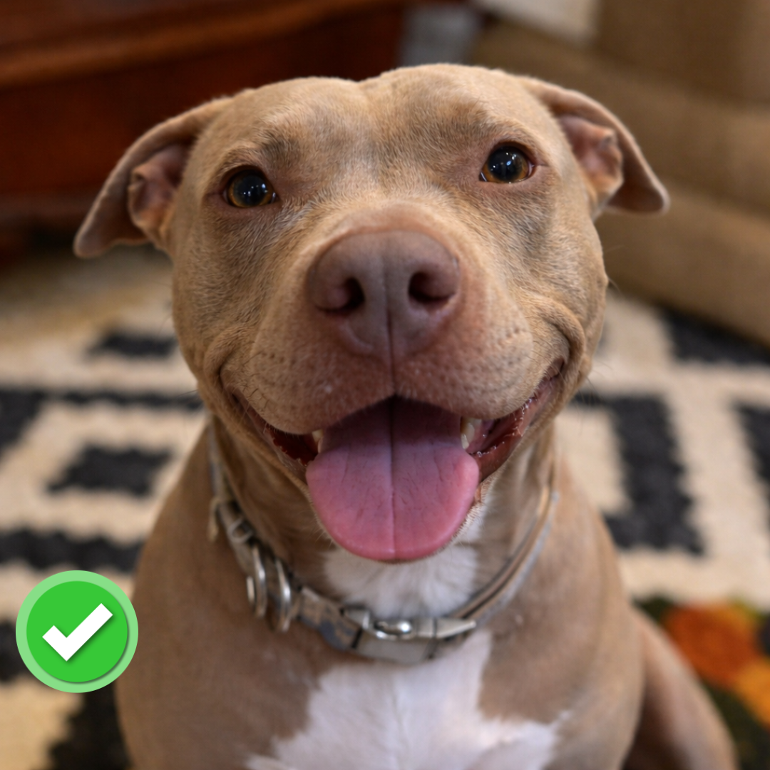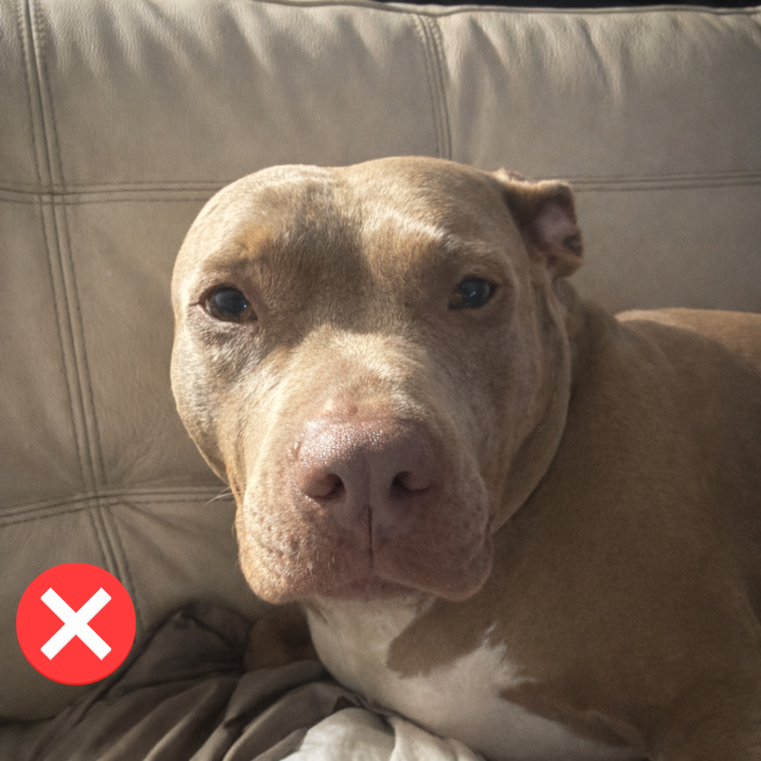 Your dog’s entire face and neck must be clearly visible. No cropped ears, chin, or head. Avoid shadows covering the eyes or muzzle.