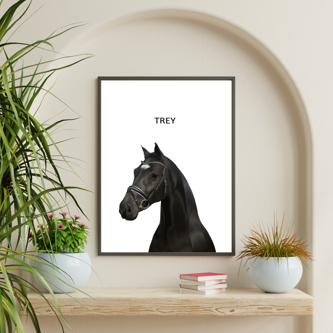 Simply upload your favorite photo of your horse, select your preferred size and frame color, and complete checkout. Our team will take care of the rest - from illustration to final printing and shipping.